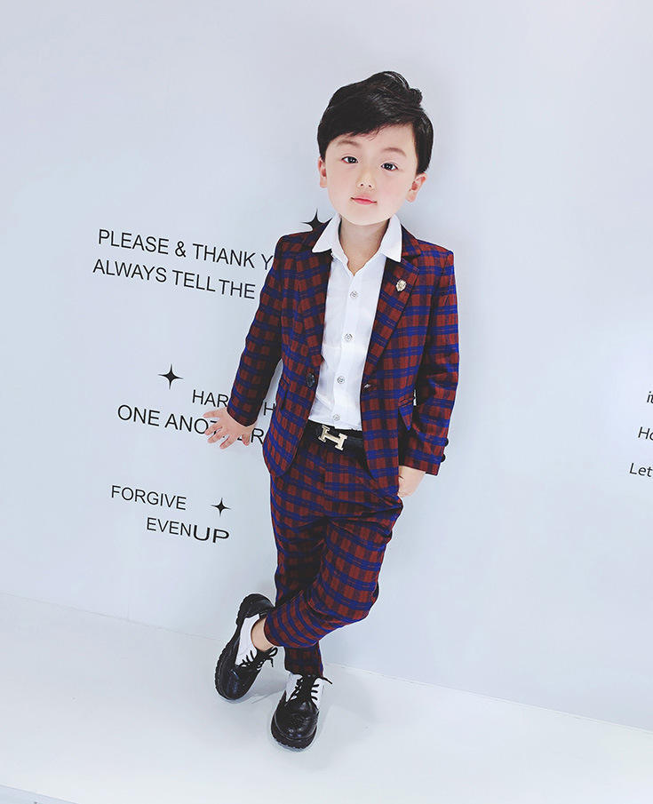 2019 versione coreana dei vestiti dei bambini del bambino del ragazzo bello reticolo pantaloni tuta 2 piece miscela del cotone di stile del signore