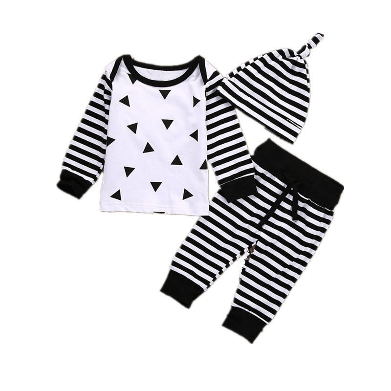 2019 New Hot Selling Wholesale Long Sleeve Round Neck Striped Tshirt Pant Hat African Baby 3 Piece 12 Month Old Boy Clothes