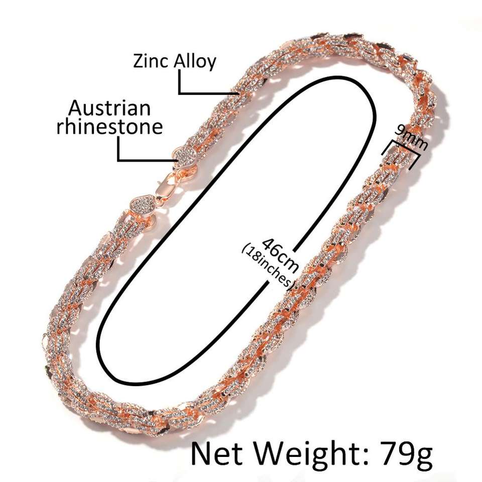 2019 New Zinc Alloy Crystal Necklace Rose Gold 24Inch 9mm Rope Chain Necklace Men Charms Jewelry Wholesale One Pcs Drop Shippi