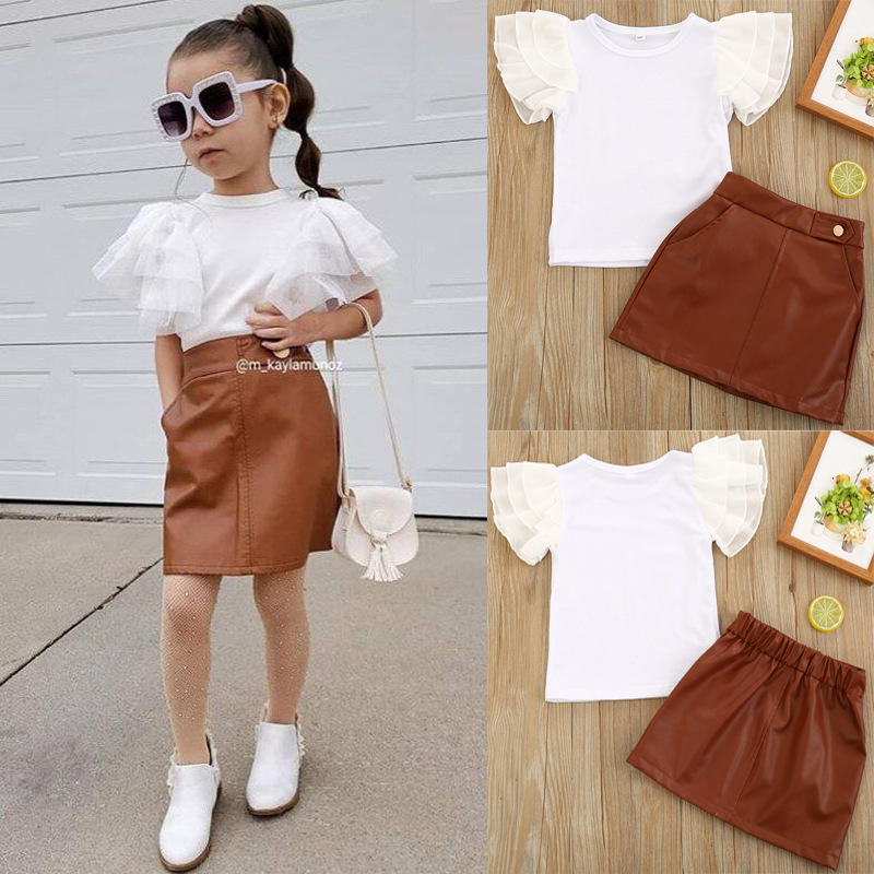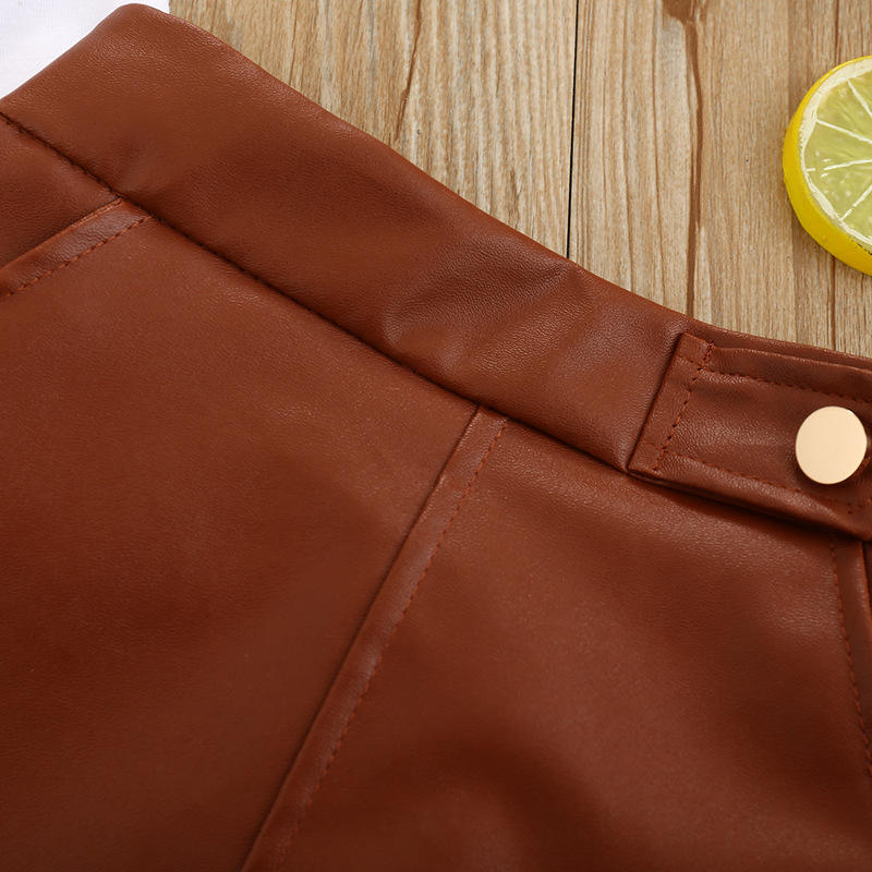 item:White Short Sleeve Tops PU Leather Skirts Outfits