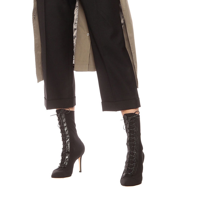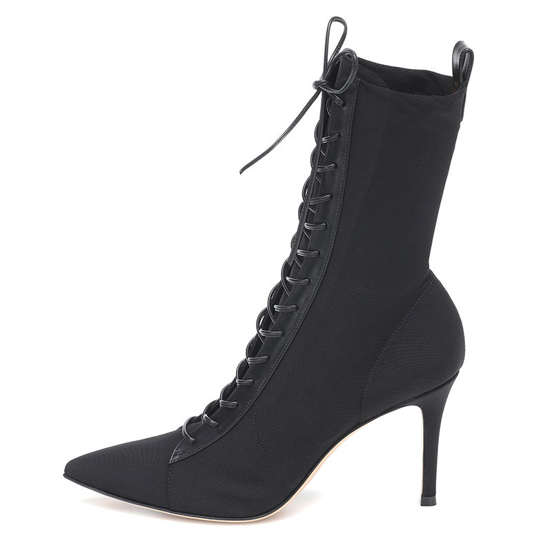 Fashion Boot Heels Women Booties Fall Black Lace Up Ladies Ankle Boots