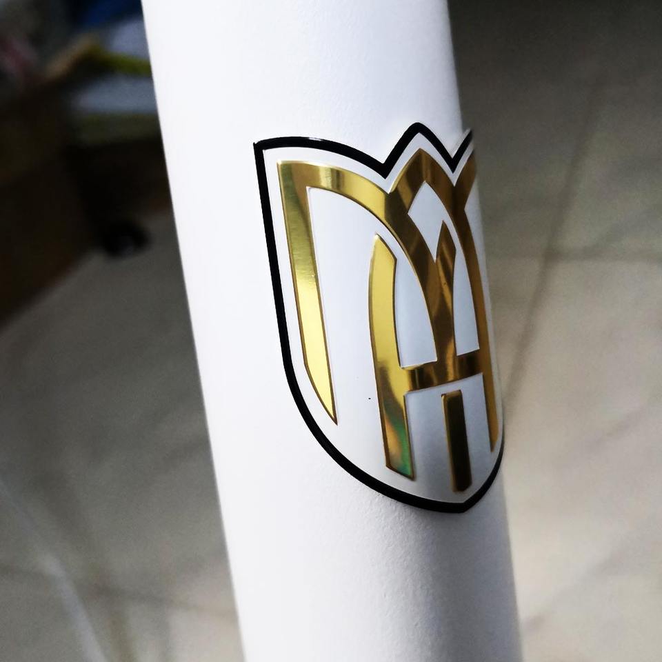 2020 adesivi metallici personalizzati di alta qualità per badge per tubo per bicicletta adesivi per Badge per testa di bicicletta curva mountain bike