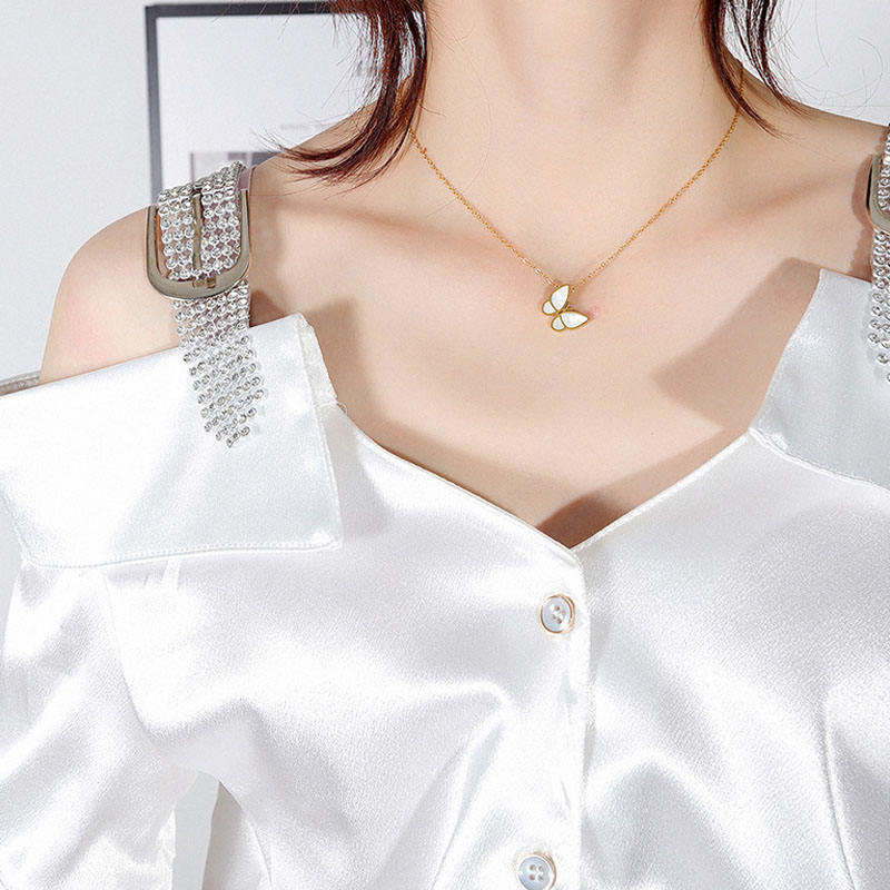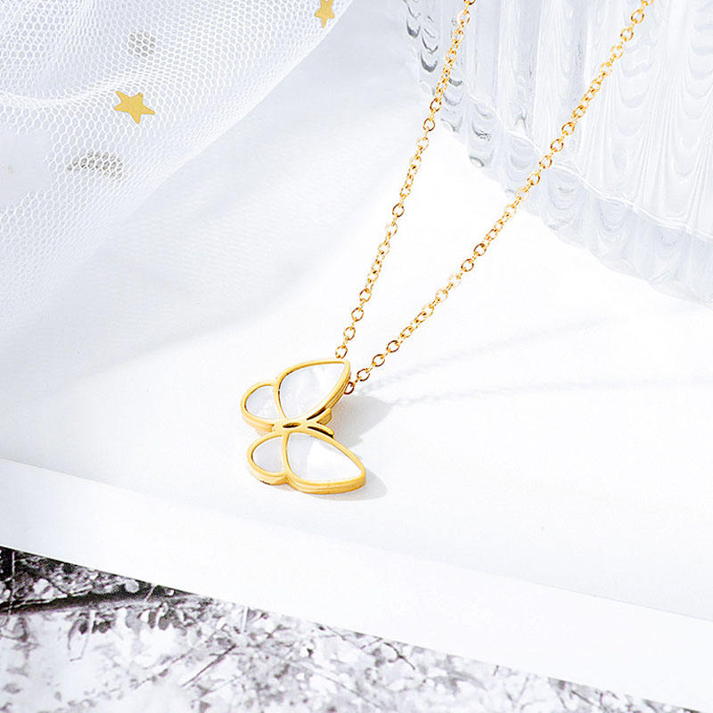 2020 vendita calda in acciaio inox 4 perle ostriche collana combinata farfalla per ragazze