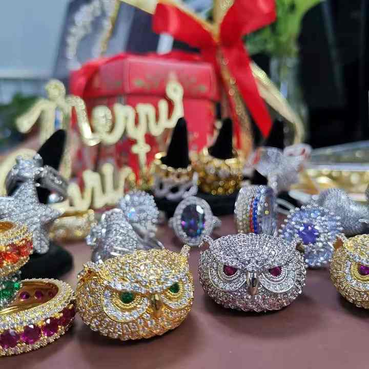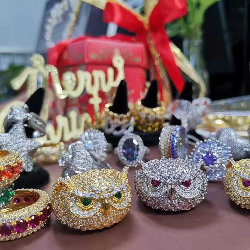 2020 di Miss Gioielli con Diamanti Ghiacciato Fuori Rock Mens Placcato Oro Hip Hop Anello