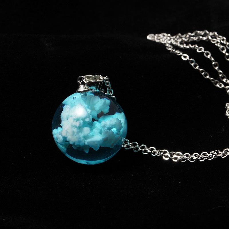 2020 Wholesale Natural Glowing in Dark Blue Sky Sky Clouds in Resin Cloudy Sky Necklace