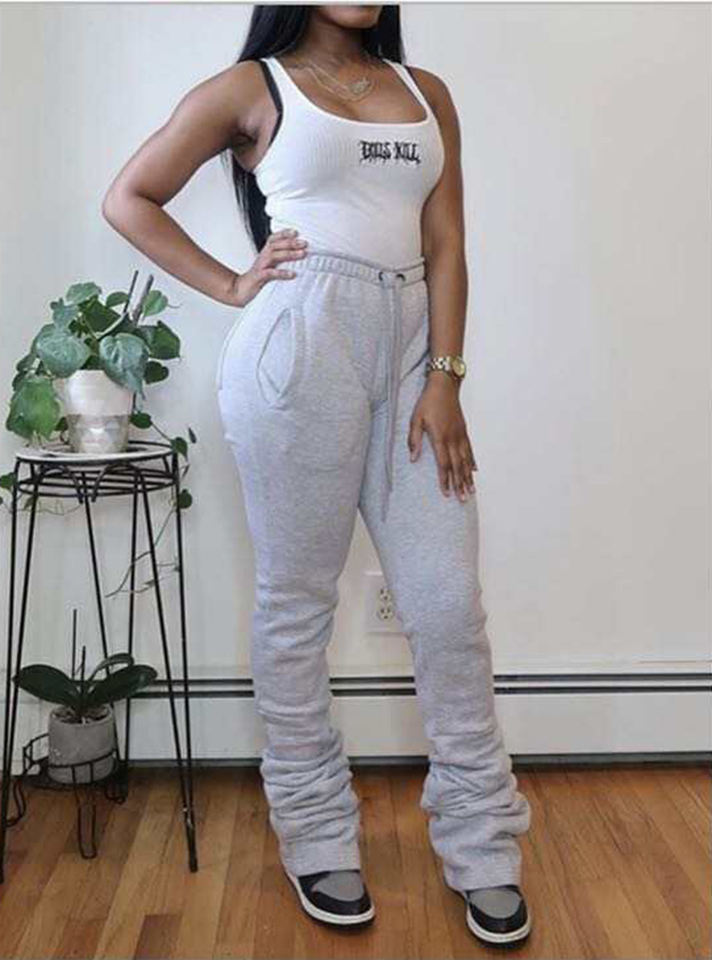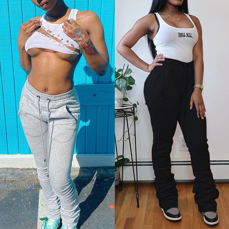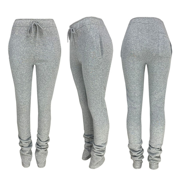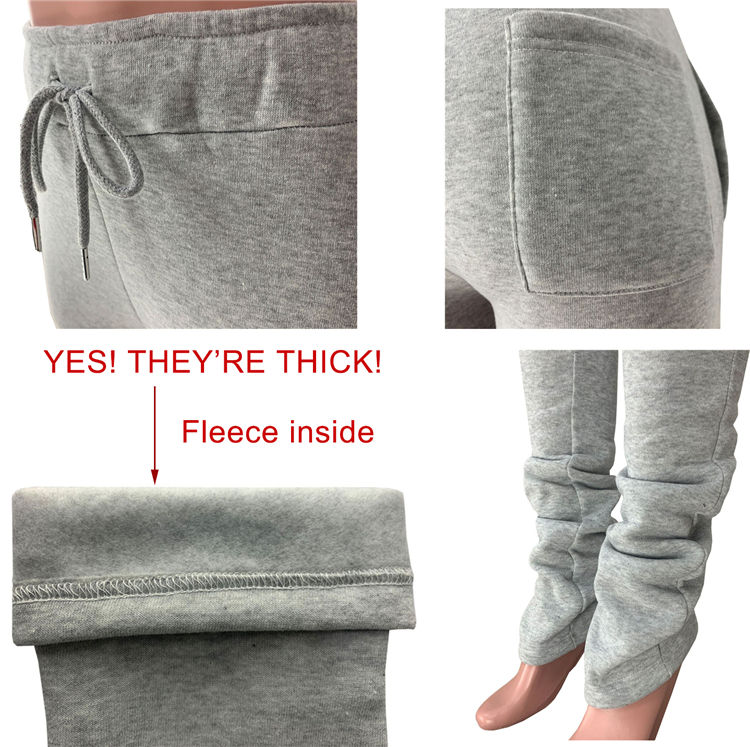 Pantaloni da donna taglie forti in pile spesso con coulisse e tasche posteriori, vita alta, modello stacked, autunno inverno 2020