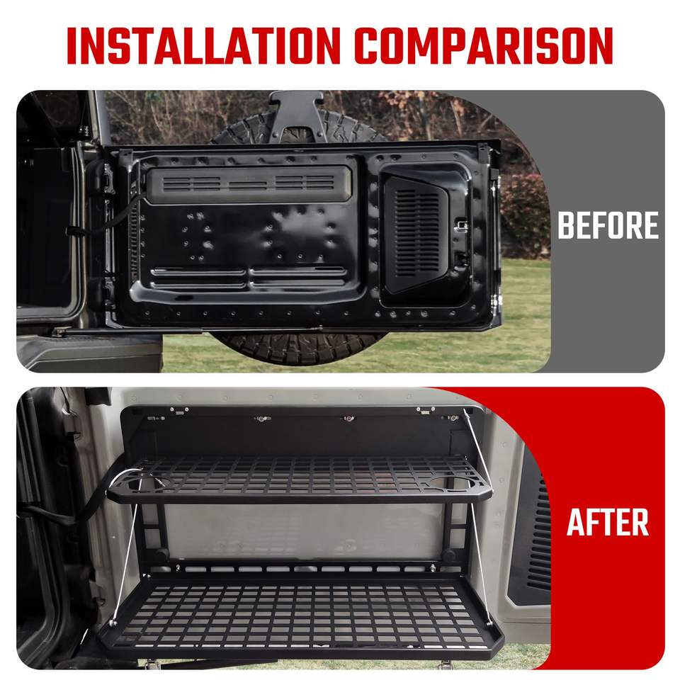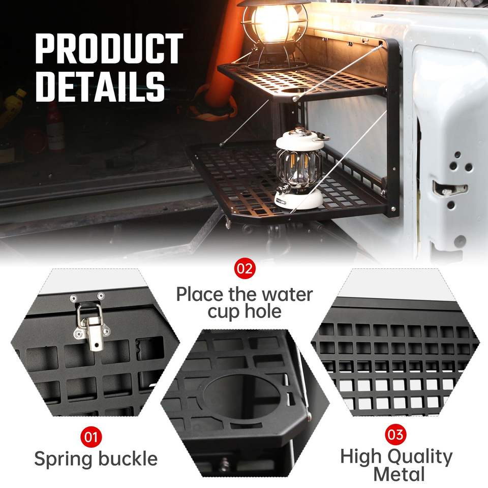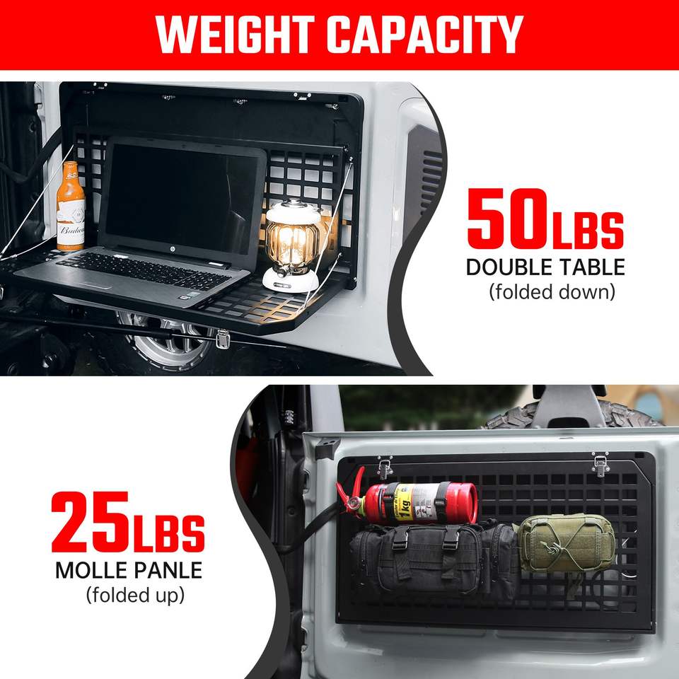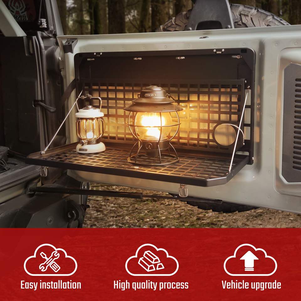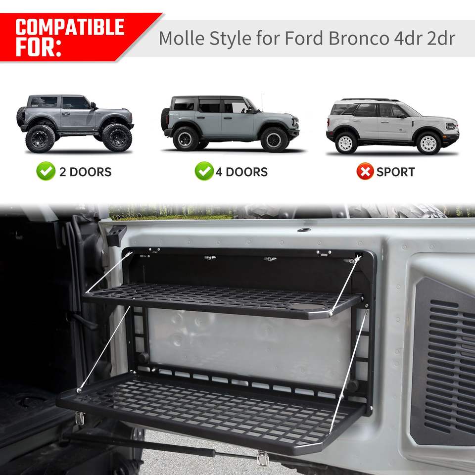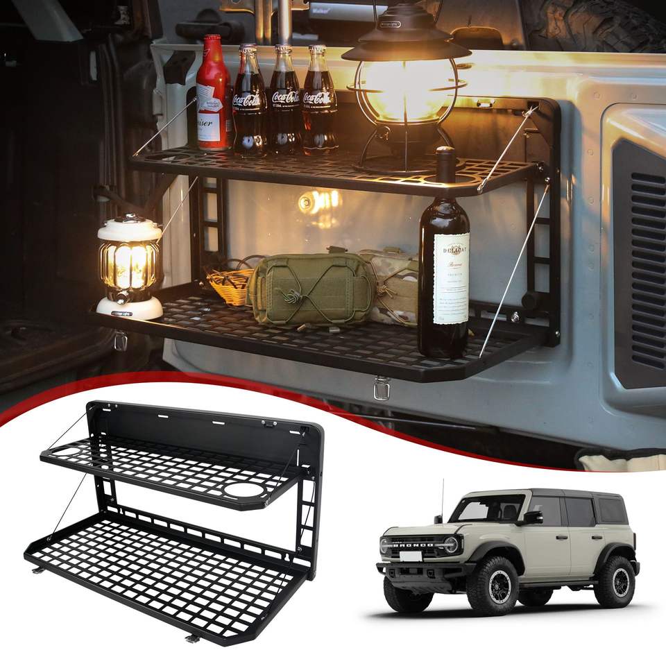 Pannello MOLLE Accessorio per Ford Bronco 2021-2024, Ripiano Posteriore Pieghevole in Lega di Alluminio, Tavolo per Portellone per Stoccaggio Posteriore