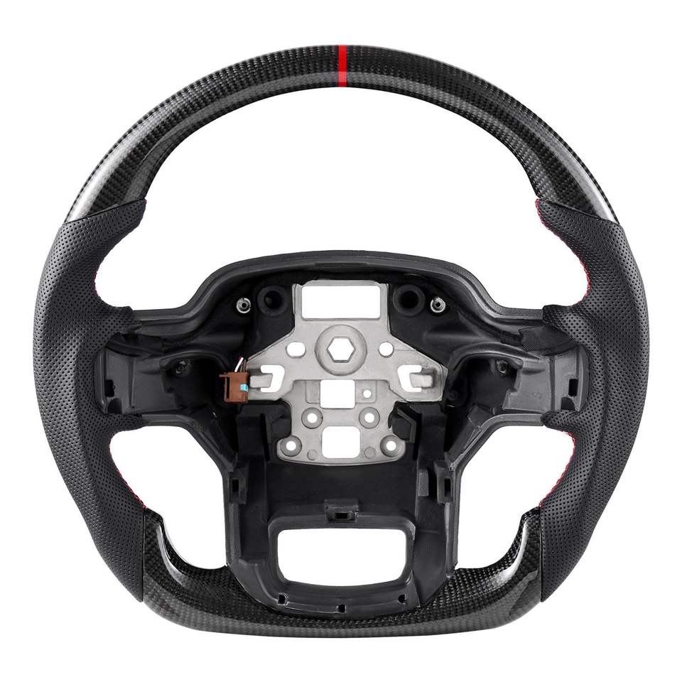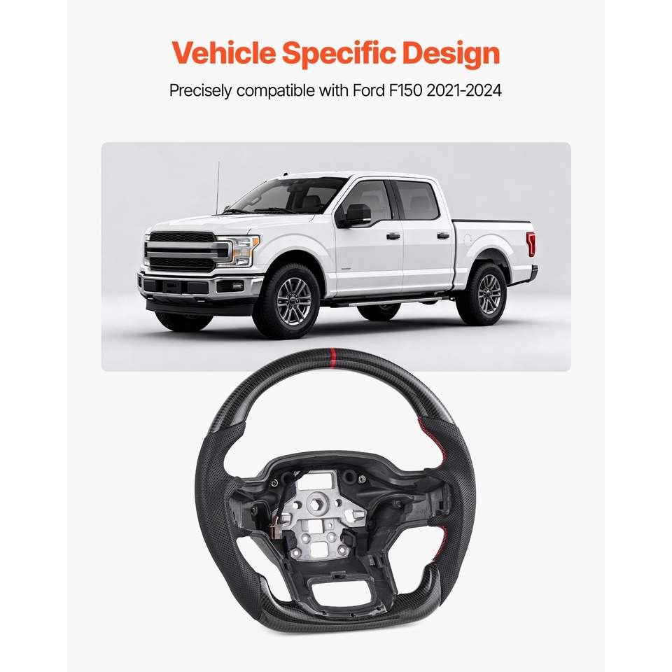 2021-2024 for F150 Carbon Fiber Steering Wheel D-Shaped Flat-Bottom Non-Slip Leather Grip Black-Heating Accessories