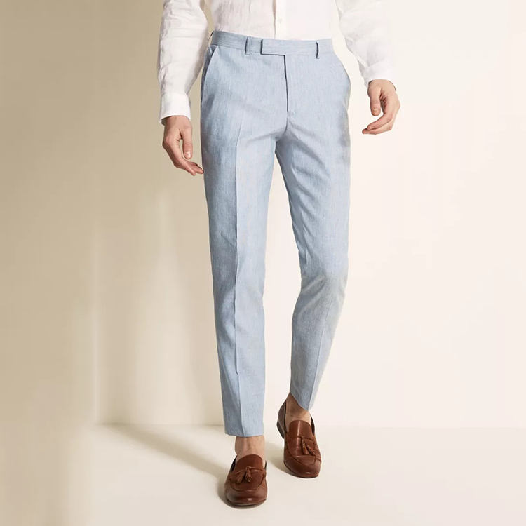 Pantaloni Casual da Uomo in Lino Azzurro di Alta Qualità Moda 2021 Pantaloni Lunghi Slim Fit Tinta Unita