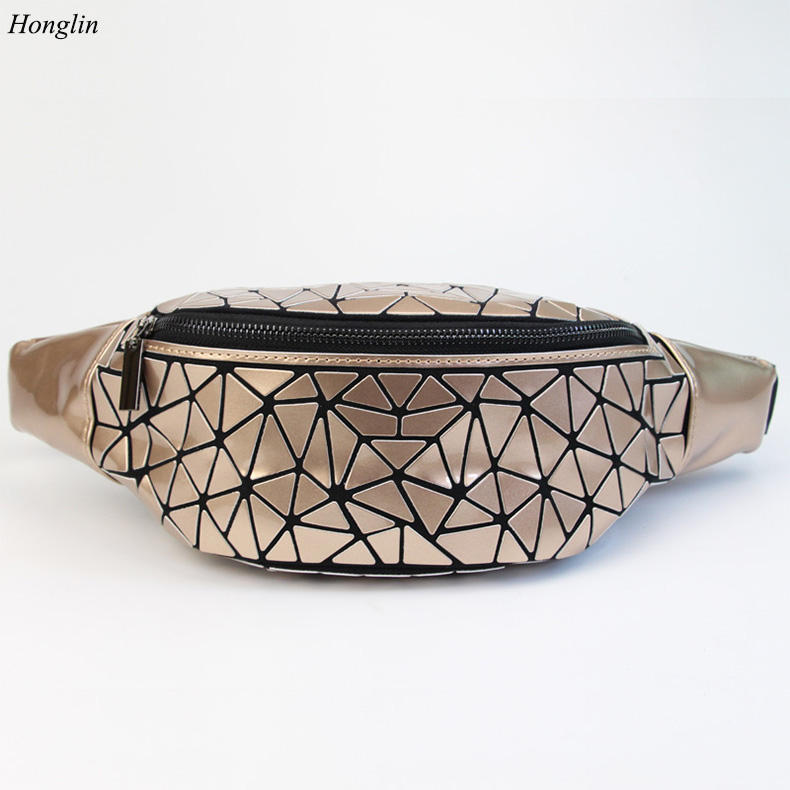 2021 Geometric Women's Fanny Pack Holographic Reflective Luminous Waist Pack Belt Bag for Travel Fashionable Backpack