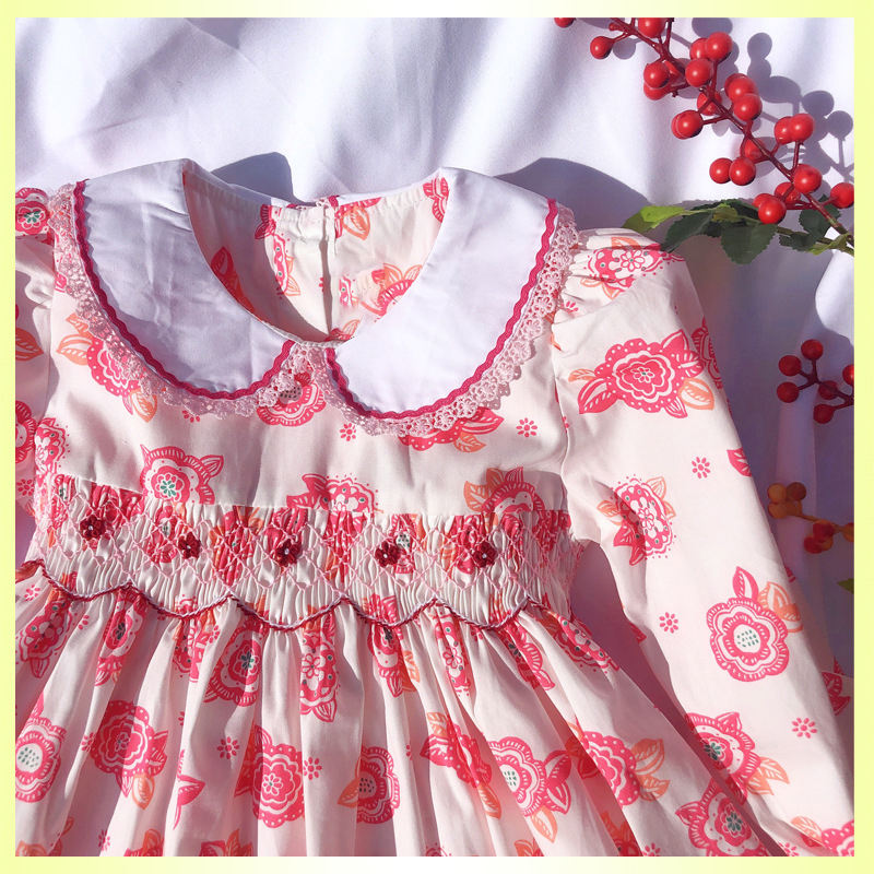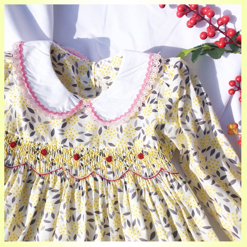 2021 nuovi Vestiti A Maniche Lunghe Vittoriano Risvolto Bambino Smocked Vestito Per La Ragazza 3-7 Anni Con L'arco