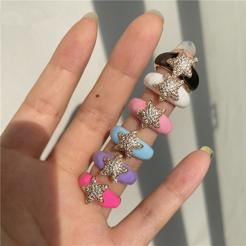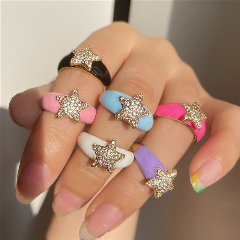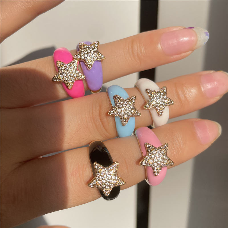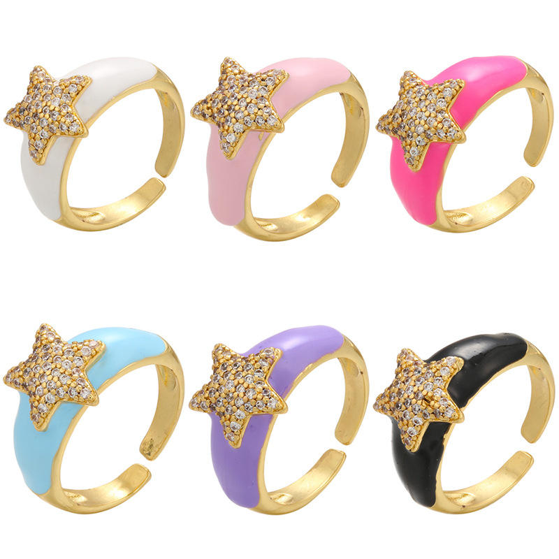 Nuovi Anelli Colorati con Smalto a Goccia 2021, Anelli Apribili in Metallo Dorato con Zirconi, Anello Regolabile con Cristalli per Donne e Ragazze, Gioielli per Feste