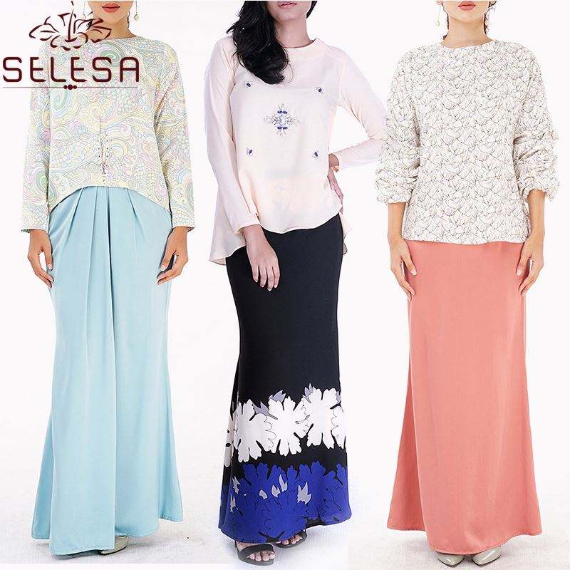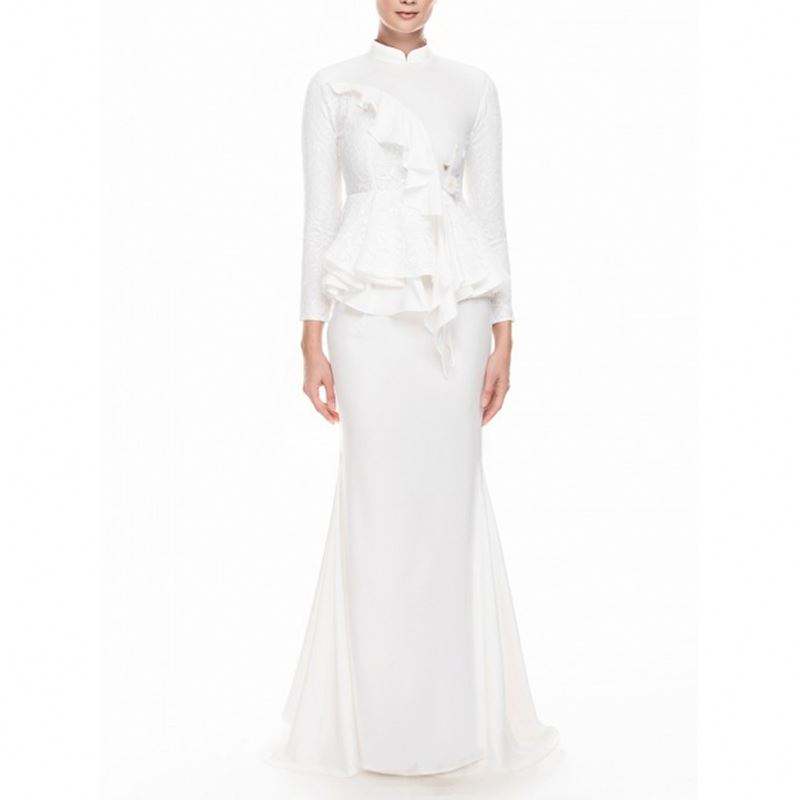 2021 Online Women's Two Piece Set Brazilian Clothing Kebaya Printing Malaysia Long Sleeve Elegant Peplum Fancy Baju Kurung