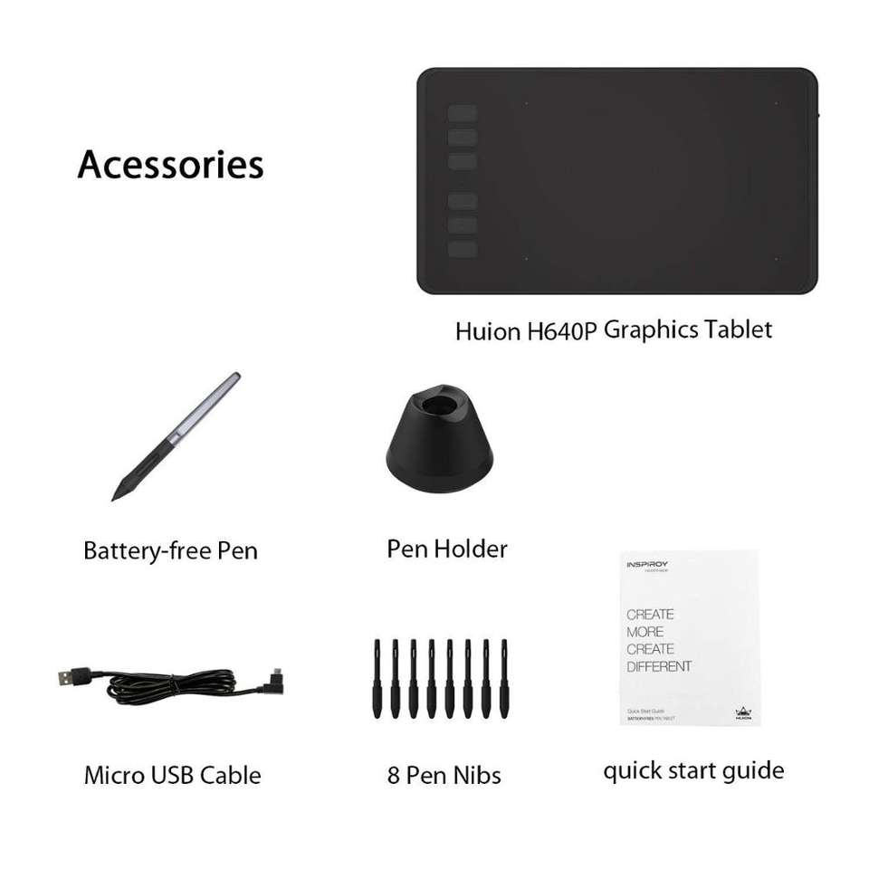 Tavoletta Grafica Huion Inspiroy H640P 2021, 6x4 Pollici, Connessione PC e Telefono, per Insegnamento Online e Disegno