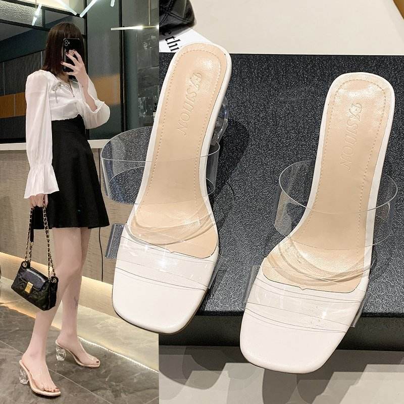 2021 estate nuovo Design sandalo trasparente cristallo tacchi alti 7 cm PU sandalo di colore puro