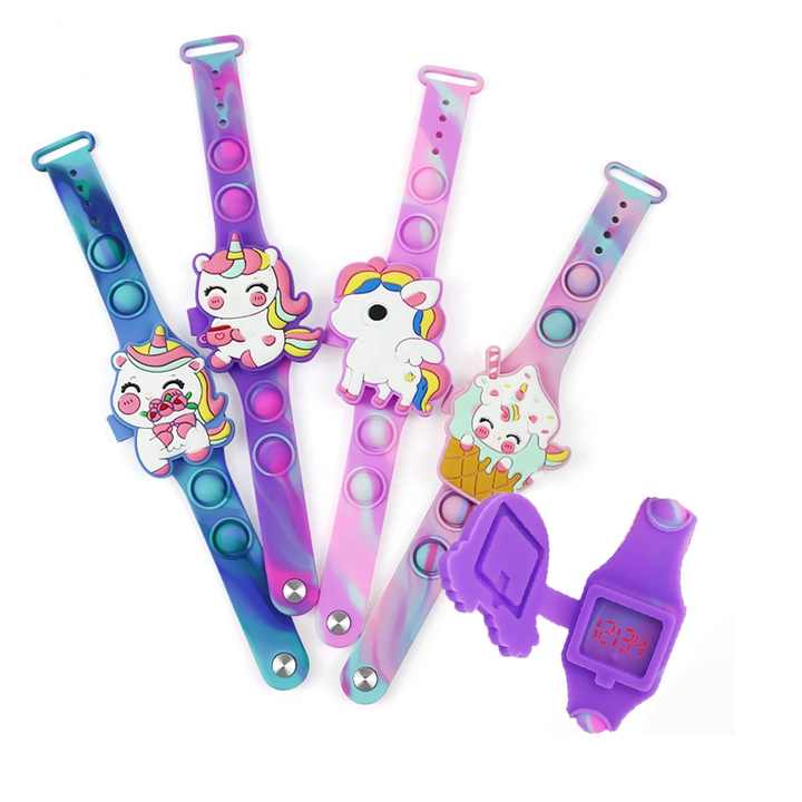 2022 contatore display tempo digitale chiuso flip led silicone unicorn push pop bubble fidget bracelet pop itting watch per bambini