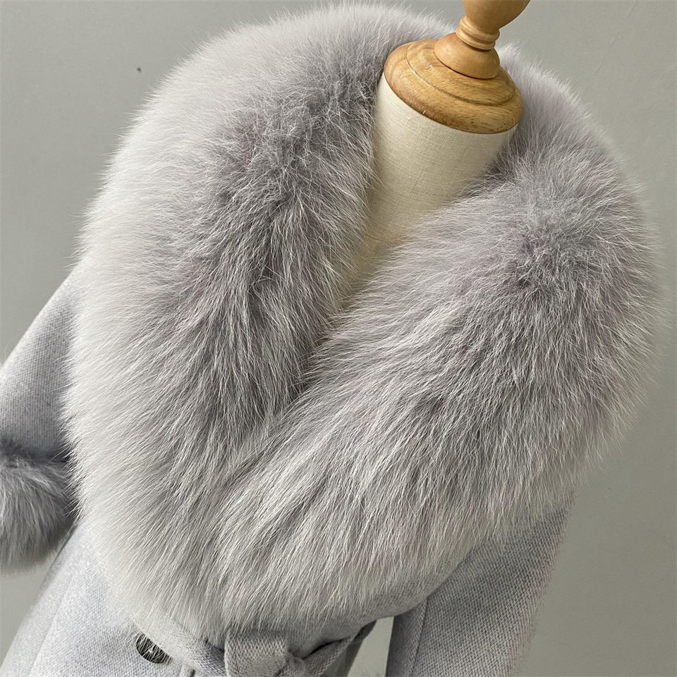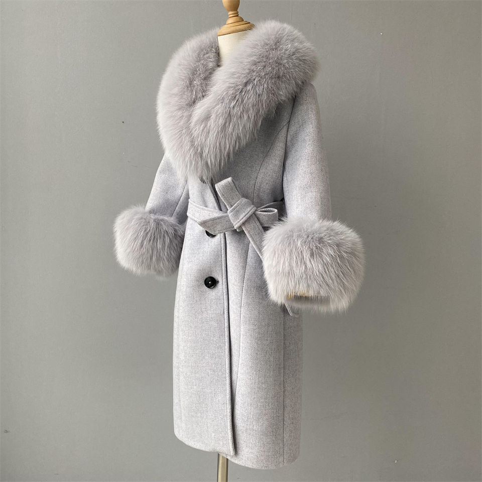 Cappotto Lungo in Cashmere e Lana con Collo e Polsini in Vera Pelliccia di Volpe, Vendita Calda 2022, Moda Personalizzata per Ragazze e Bambini
