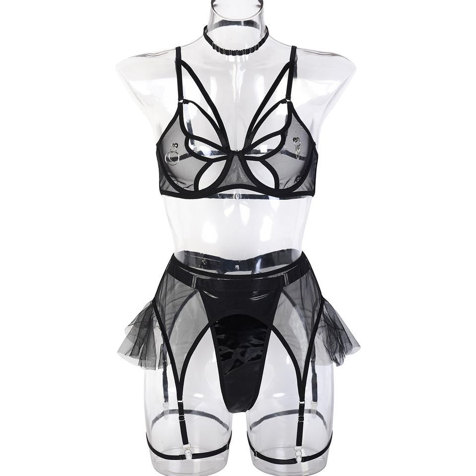 2022 Hot Steel Ring Women Lingerie Underwear Hollow Out Fashion Mesh Beautiful Leather Thong Women's Sexy Lingeries