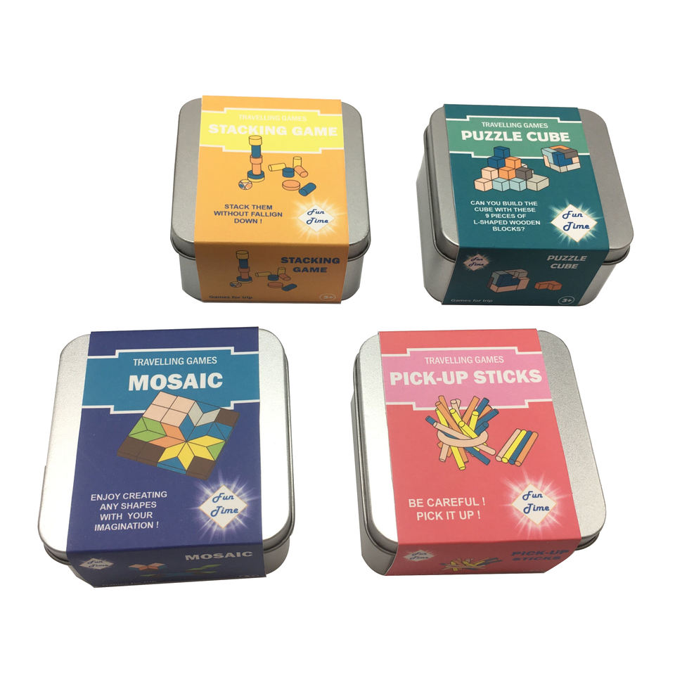2022 New 3D Wooden Puzzles Games Brain Tester Mini Tin Box for Trip Puzzle Cube Travelling Game CBL1136S