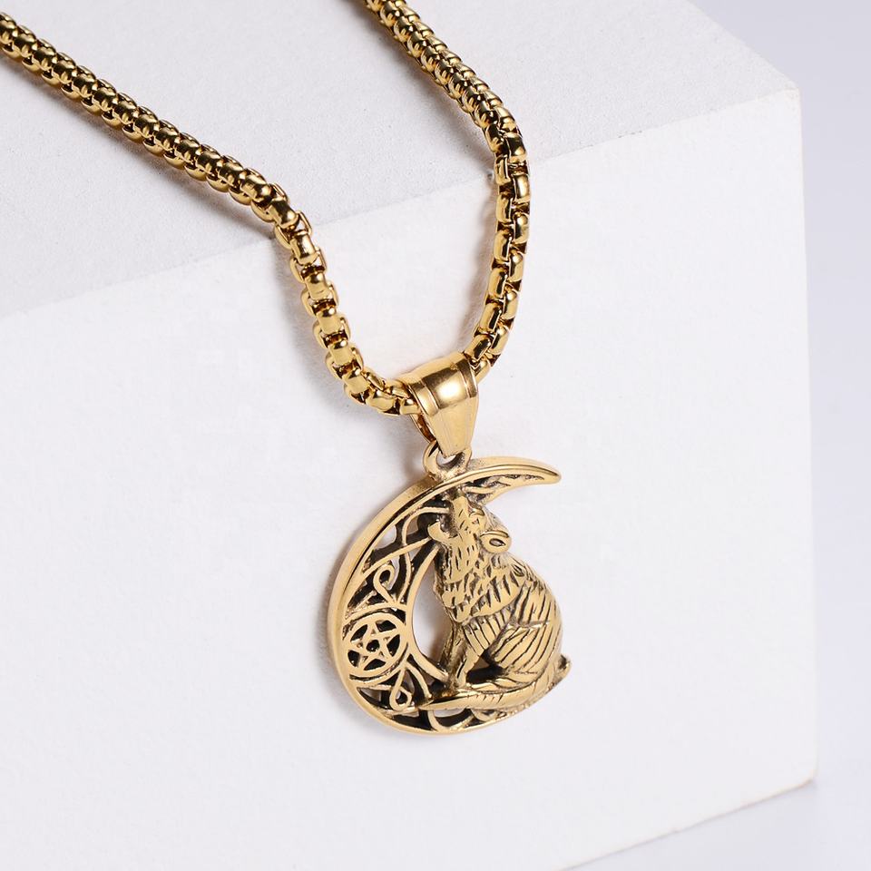 2022 new men E-commerce collana con ciondolo a mezza luna in acciaio al titanio Viking Howling Wolf