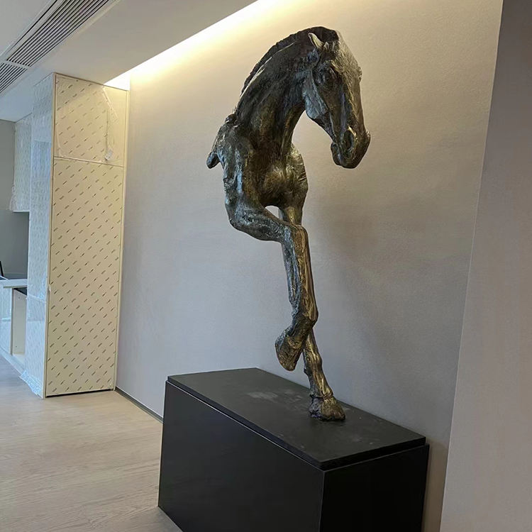 2022 nuova scultura di decorazioni per esterni scultura di cavalli di arte astratta di colore bronzo in fibra di vetro