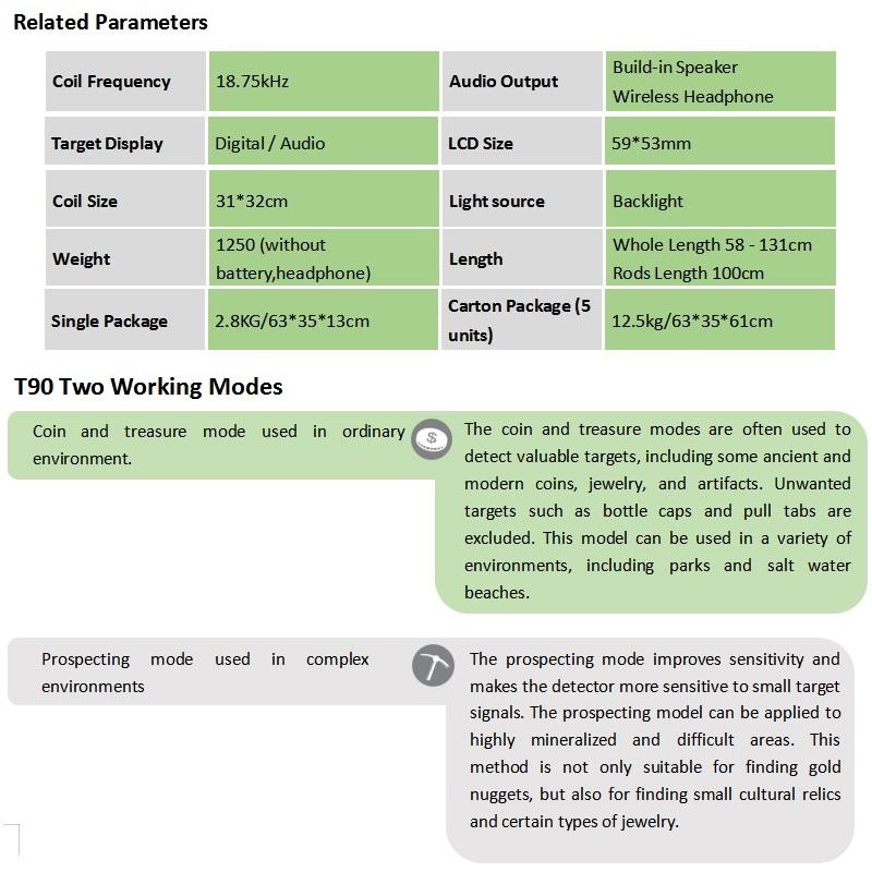 Nuovo Modello T90 Aggiornato 2022 Metal Detector per Oro Completamente Impermeabile Subacqueo ad Alta Sensibilità con Cuffie Wireless e Confezione Retail
