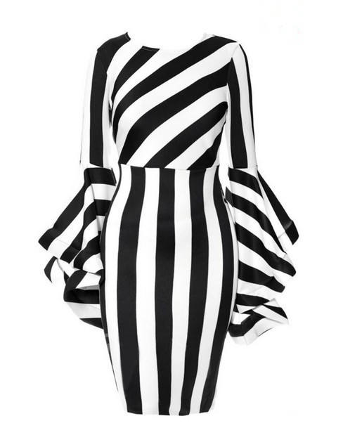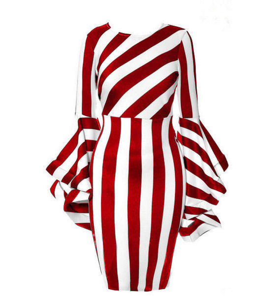 2022 Women's Plus-size Dress with Vertical Stripe Stitching and Flounces with Sleeves