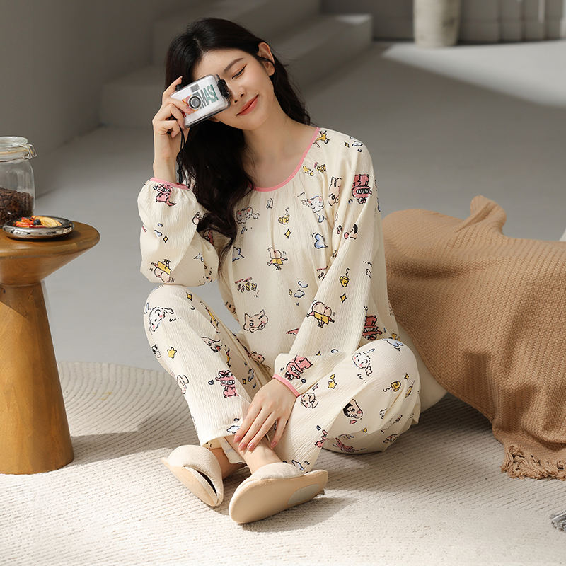 2023 Autumn Womens New Sleepwear Girls Nightgown Long Sleeve Printed Cotton Sleeping Pijamas Mujer Pj Sets Pajamas for Women Set