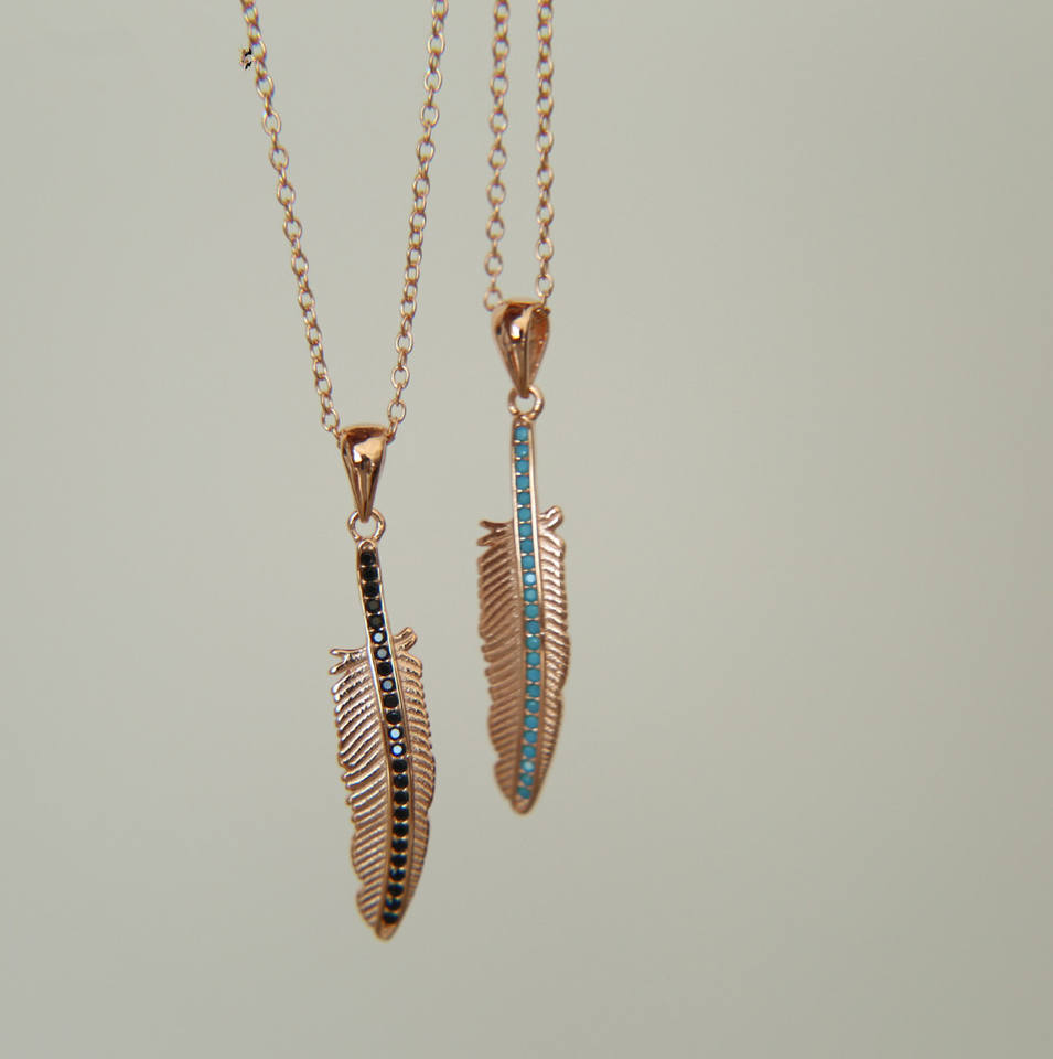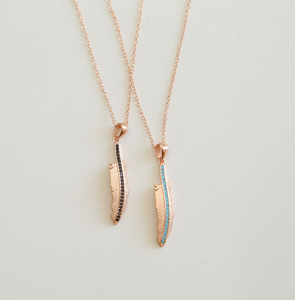 2023 Fashion Women Jewelry Rose Gold Plated Pave Turquoise Feather Charm Fashion Gold Necklace