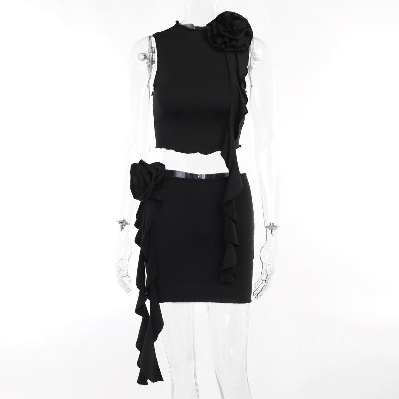 2023 Flower Top Hip Skirt Two Piece Set Skirt Hot Girl Summer Temperament Slim Fit Fashion Casual Sexy Women's Clothing