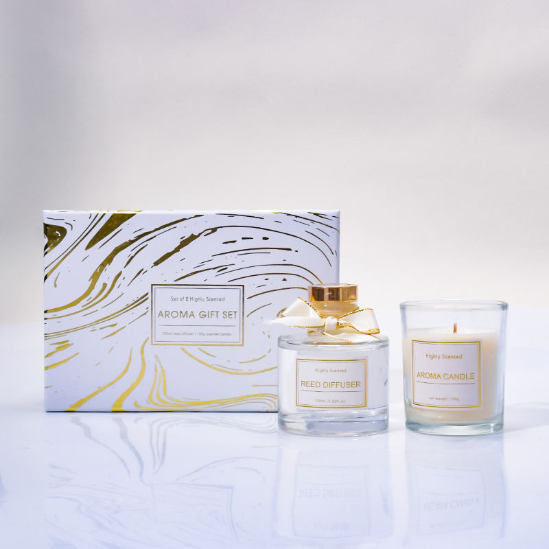 2023 Hot-selling 100g Candle and 100ml Essential Oil Fragrance Reed Diffuser Set Glass Bottle Perfume Oil Set