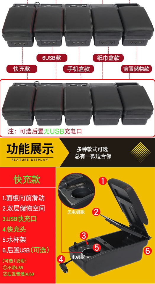 Rotatable, Storage Box, Air Ventilation, USB CHARGER, Cup HolderFunction
