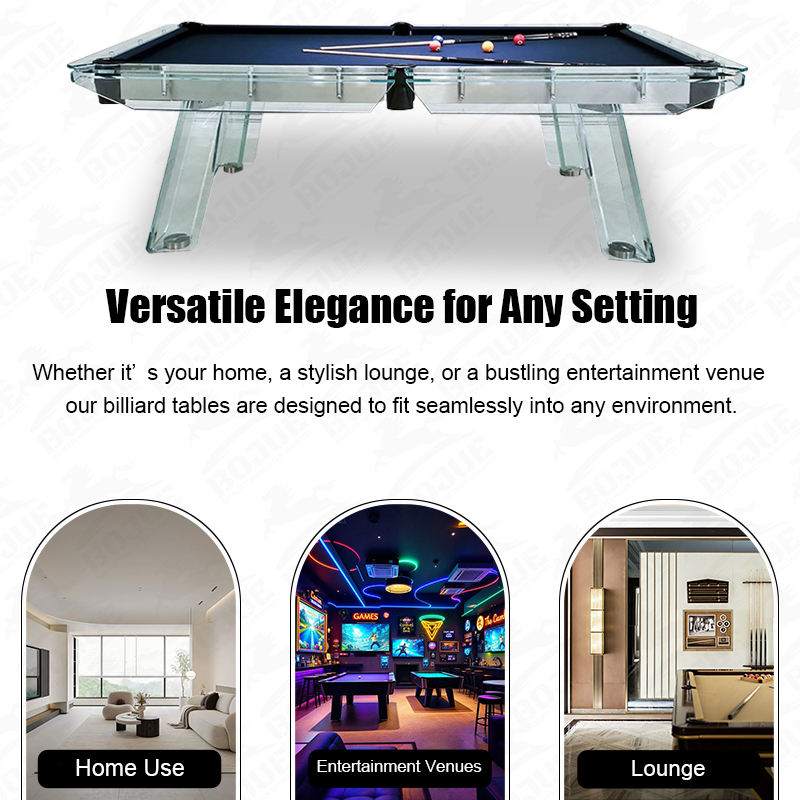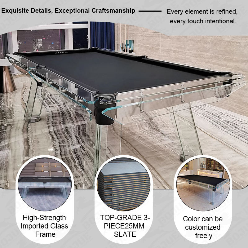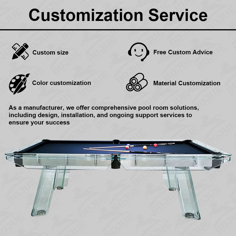 2023 stile moderno di alta qualità in acciaio inossidabile 8ft e 9ft vetro cristallo Snooker e biliardo tavolo da biliardo nuovo Design in vendita