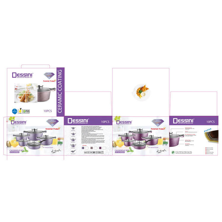 2023 nuovo arrivo 10 pezzi aspetto diamante pressofusione casseruola in alluminio pentola rivestimento in granito set di pentole antiaderenti