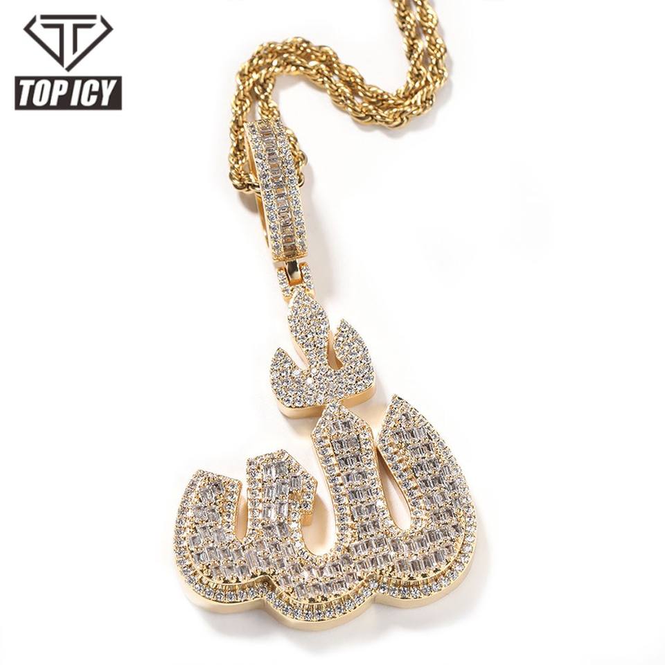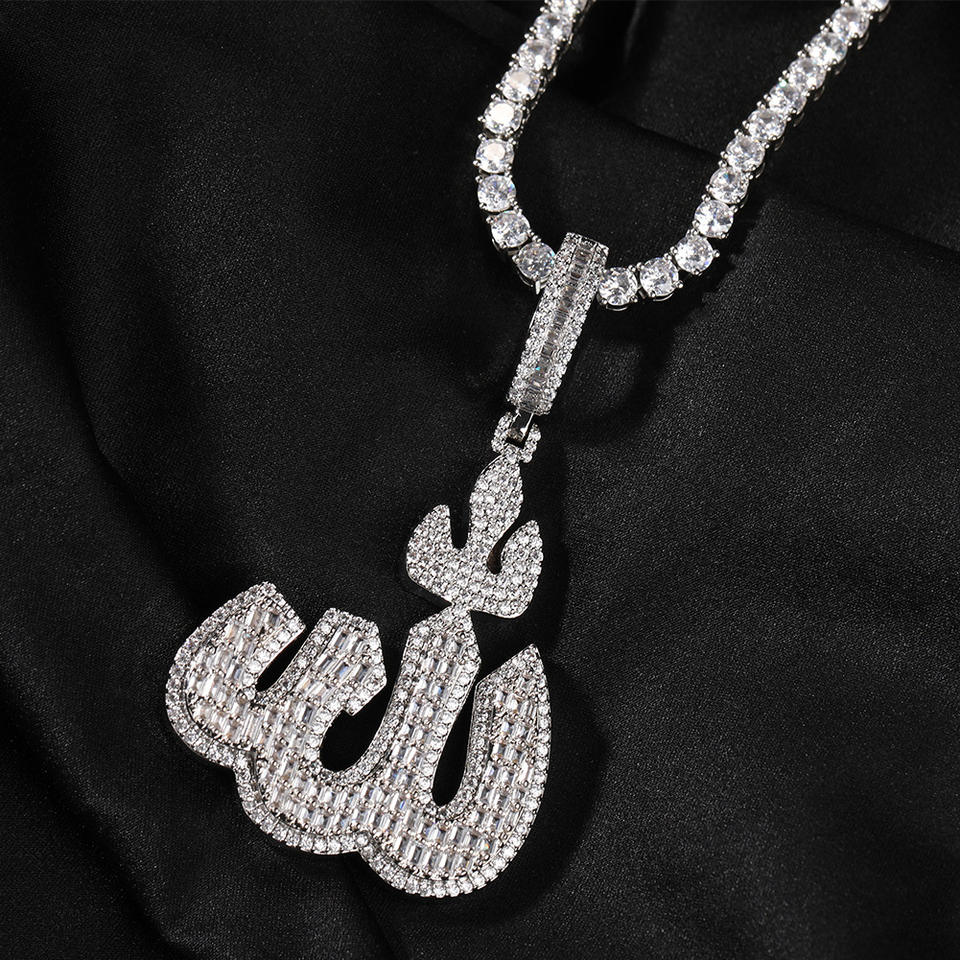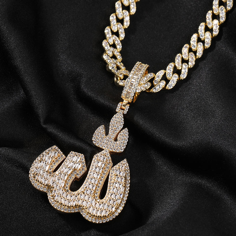 2023 nuovo arrivo arabo musulmano Islam simbolo collane con ciondolo Iced Out CZ Diamond Allah nome collane con ciondolo