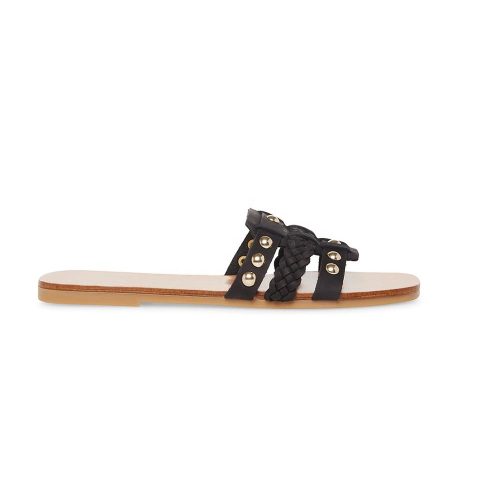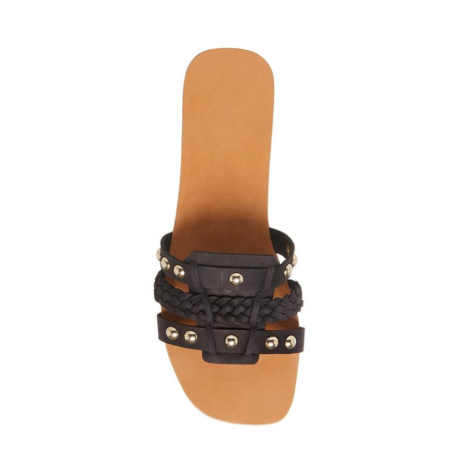 2023 nuovo arrivo piatto fantasia tacchi punta tonda donna estate borchie Slip On sandali donna indossare ogni giorno scarpe