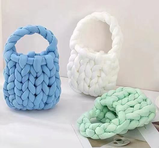 Nuova Borsa a Mano Casual Coreana 2023 con Chiusura Aperta in Filato Intrecciato, Borsa da Donna in Pelle PU Lavorata a Maglia con Logo Personalizzato