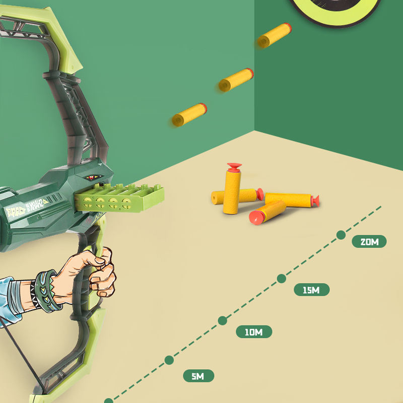 2023 New Outdoor Sports Kids Cartoon Semi-automatic Drawing Bow Burst Soft Bullet Archery Toy Simulation Bow Arrow Set Game