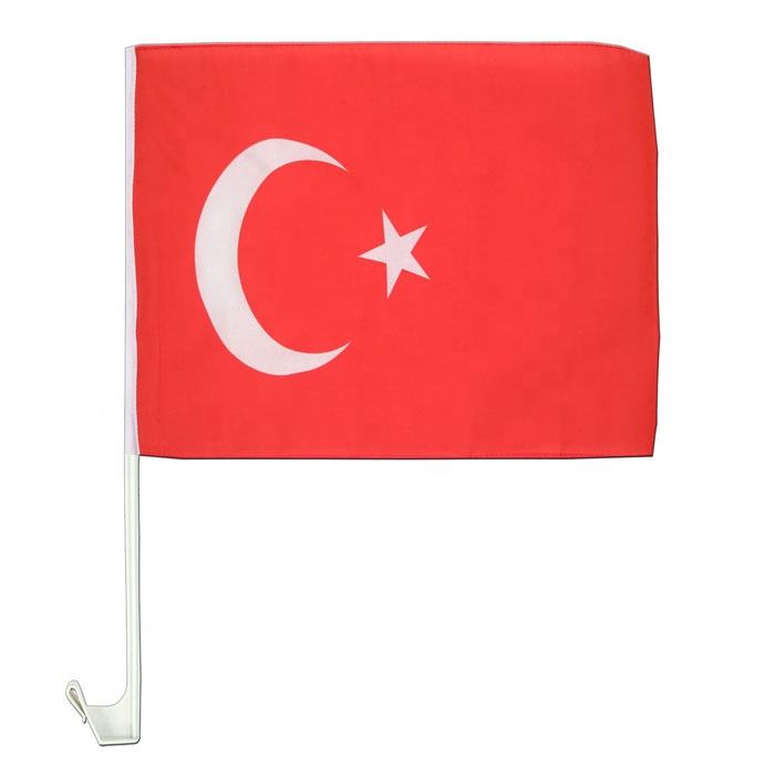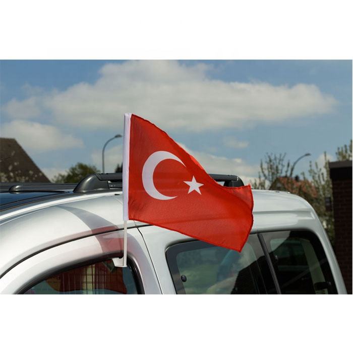 2023 nuovo prodotto stampa personalizzata poliestere turchia bandiera auto con asta di plastica
