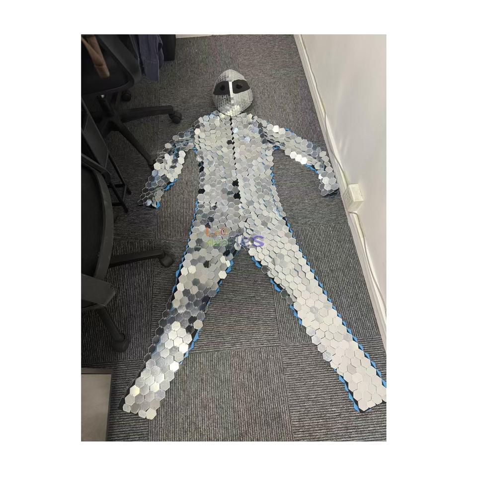 Nuovo Costume da Robot Specchio 2023, Costume da Uomo Specchio Argentato per Spettacoli, Performance, Club, DJ, Danza