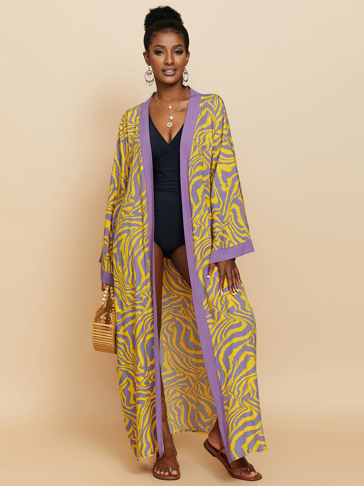 2023 Plus Size Kimono Cardigan stampa zebrata donna Base cappotto Kimono Cardigan lungo donna Wrap Tie kimono