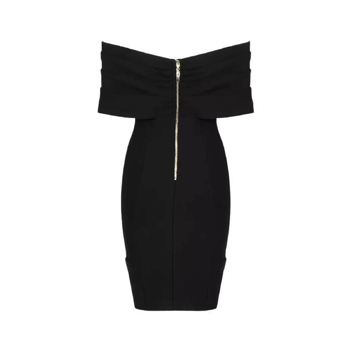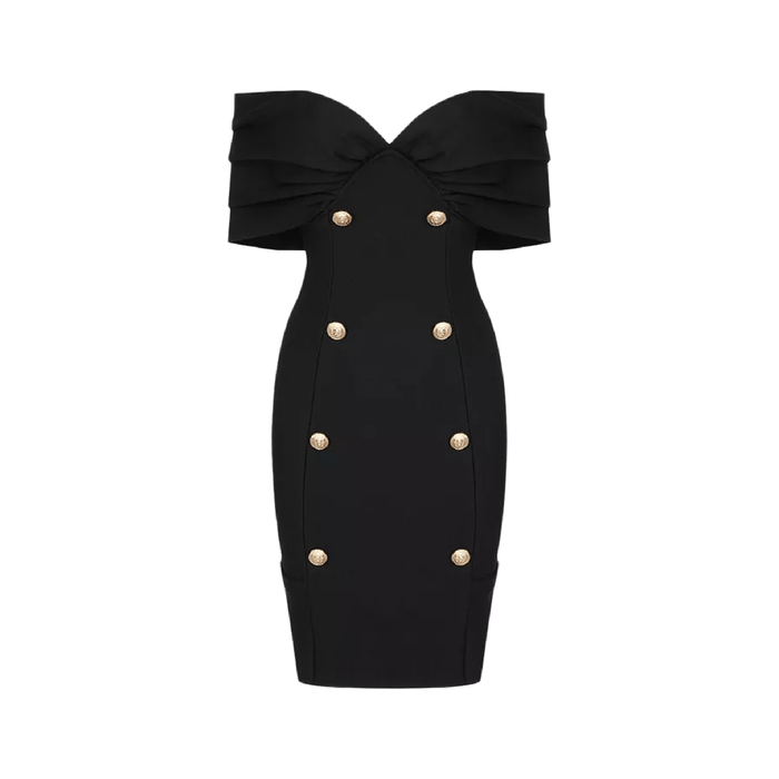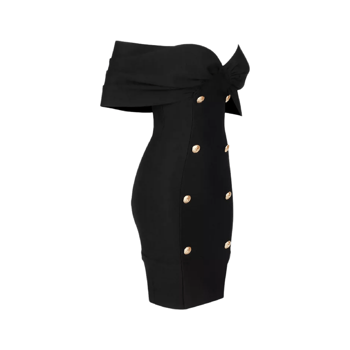 2023 Summer Fashion Socialite Temperament Off-The-Shoulder V-neck Chest Wrap Elastic Double-Breasted Bandage Dress