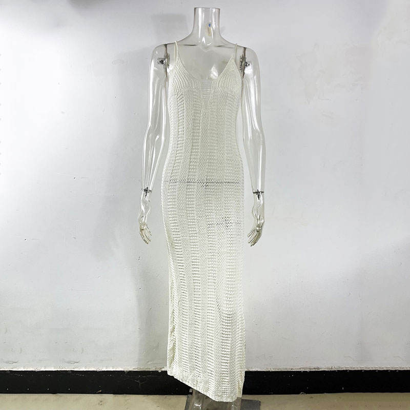 Abito Lungo Estivo 2023 in Maglia con Schiena Scoperta per Feste in Spiaggia, Vestito Lungo con Spacco per Donna