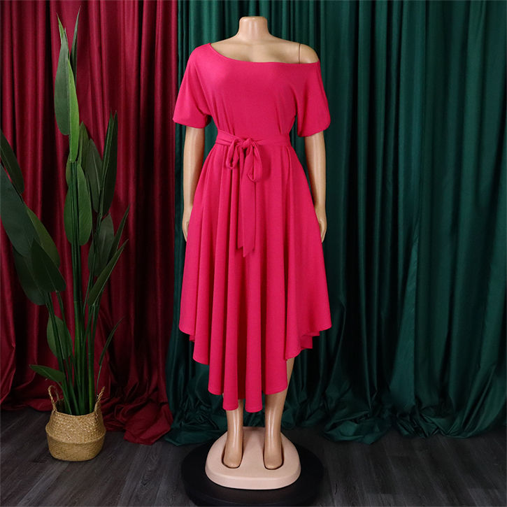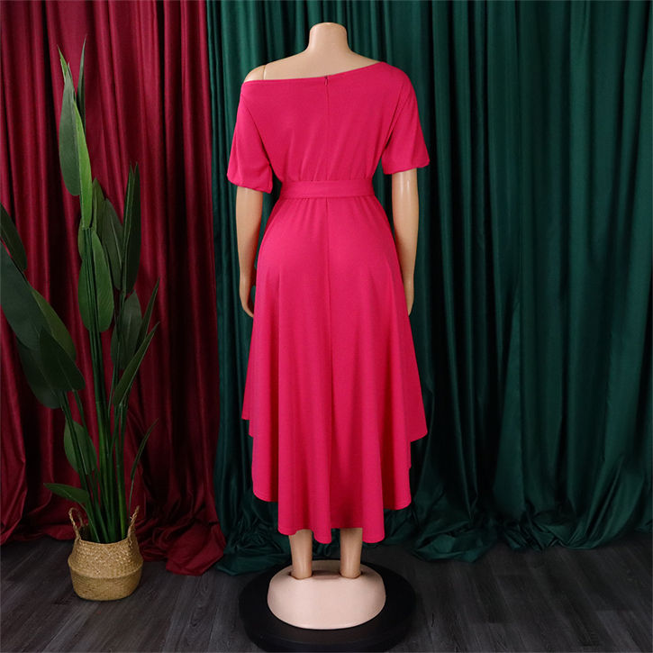2023 Summer Women's Dress Elegant Plus Size One-shoulder Dresses African Lady Formal Evening Chiffon Big Skirt Dresses with Belt