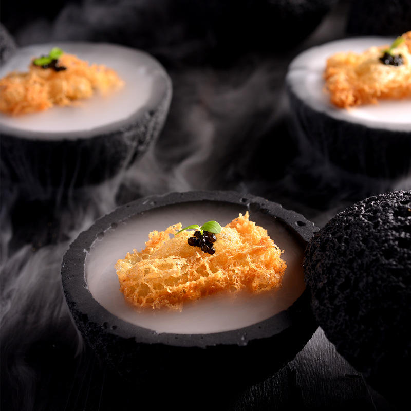 2023 Vaisselle Piatti Pratos Restaurante Restaurant Hotel Horeca Volcanic Rock Ball Stone Soup Tray Dry Ice Dishes Ball Bowl Set