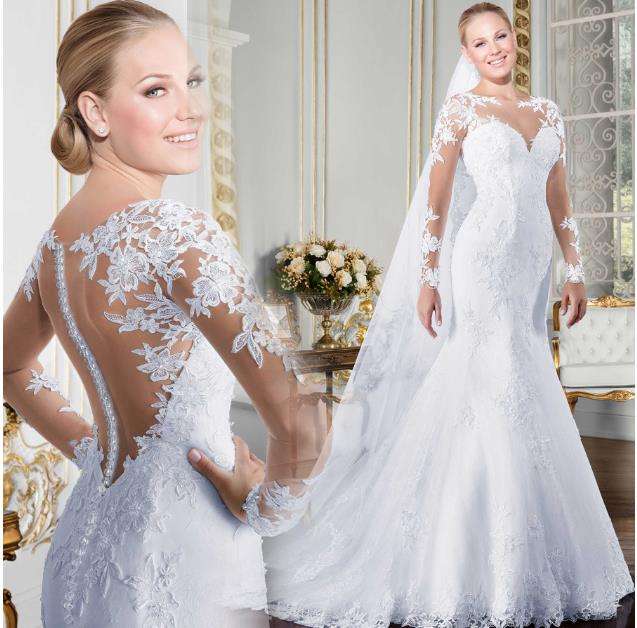 White Women Long Sleeve Lace Bridal Wedding Gowns Wedding Dress