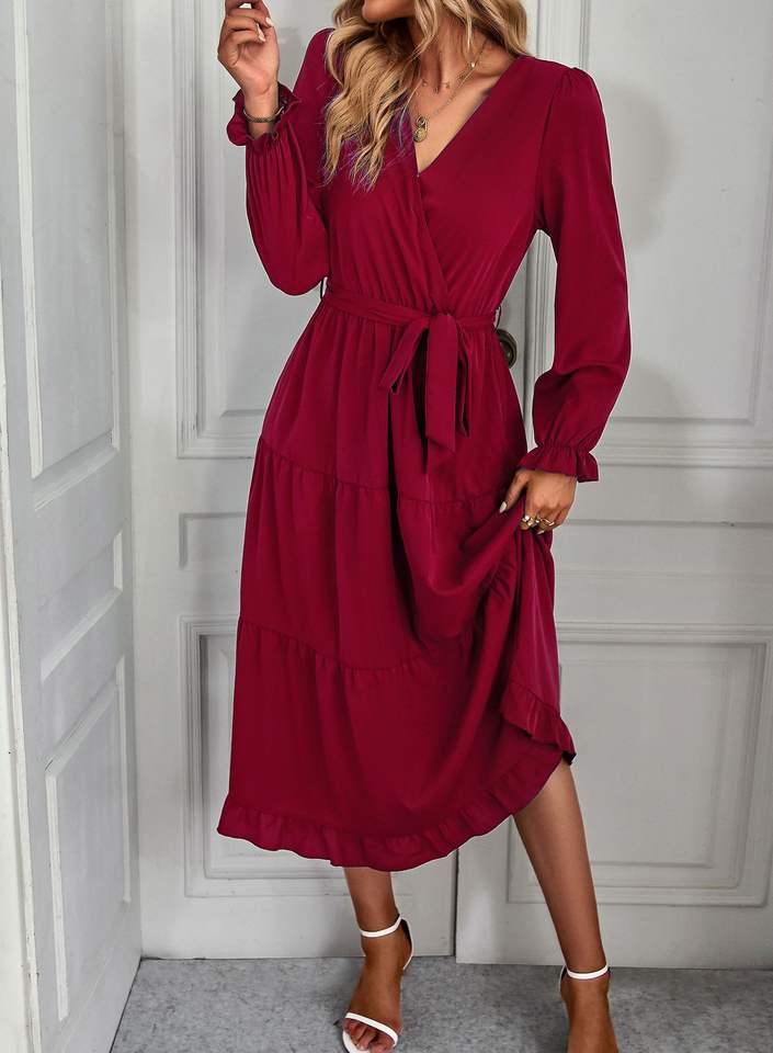 Nome del prodotto:Abito Casual a maniche lunghe da donna in tinta unita grande Swing
