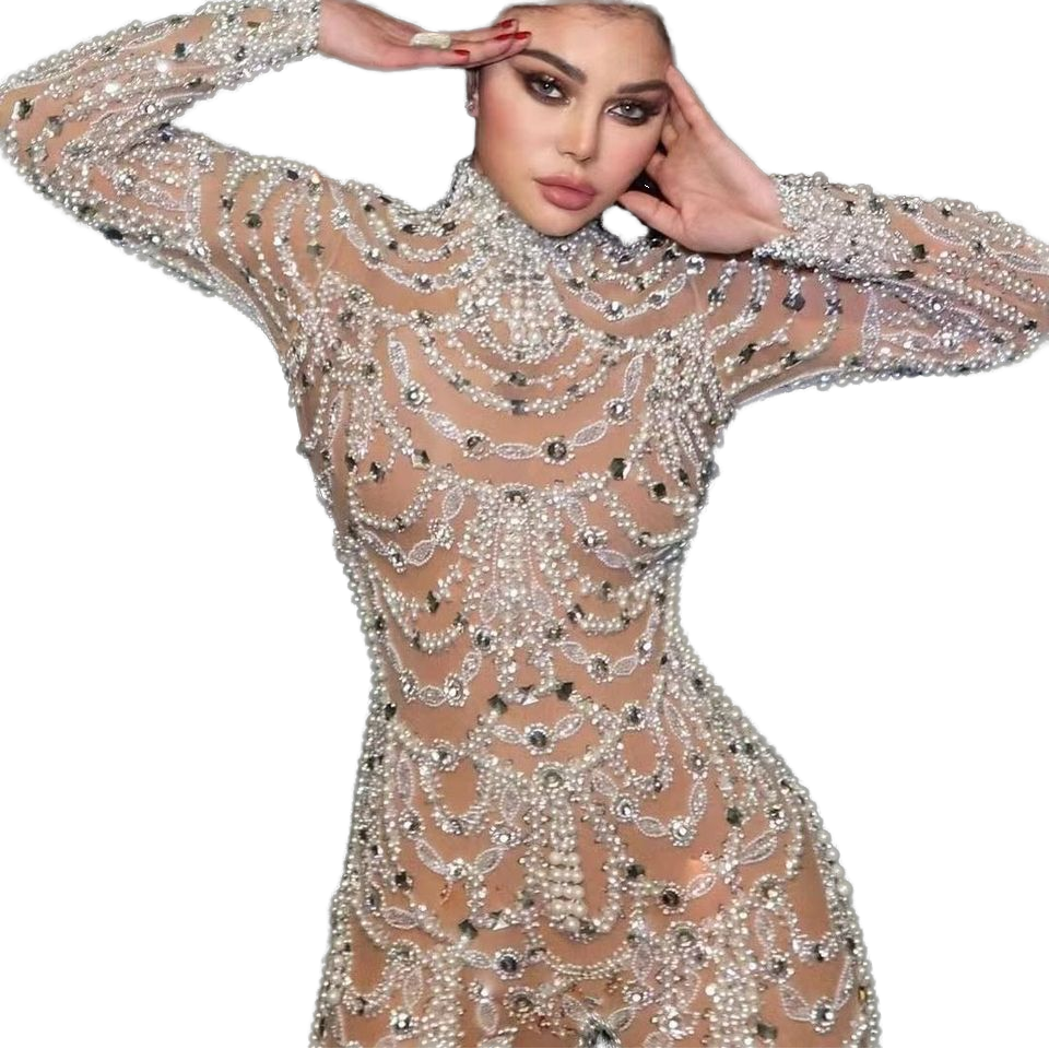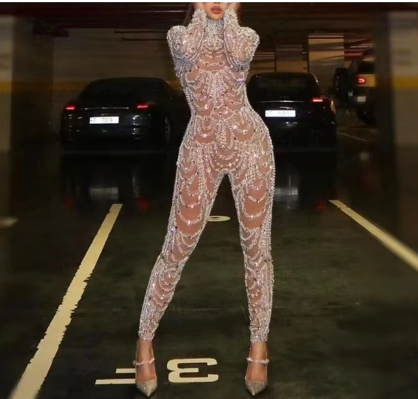 2024 Autumn Elegant Women's Jumpsuit Luxury Sequin Decoration Bodycon Party Rompers Casual Solid Print Design Skinny Rompers
