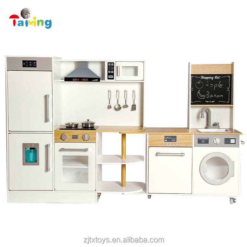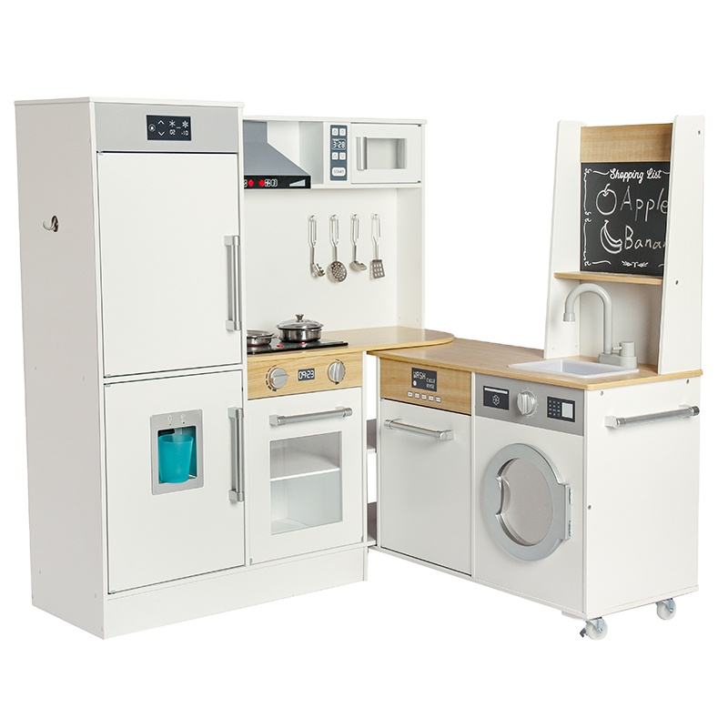 2024 Big Size Wooden Kitchen Toy Cooking Utensils Children's Kitchens Rotatable with Rollers MDF