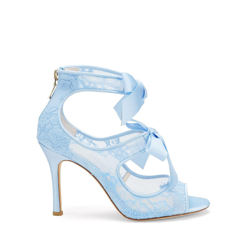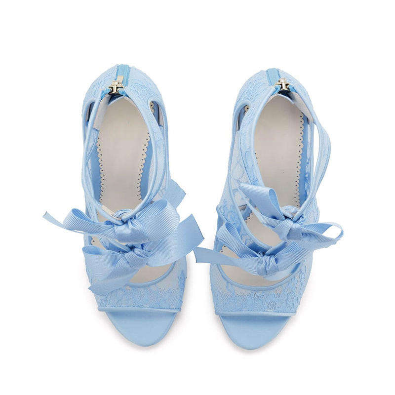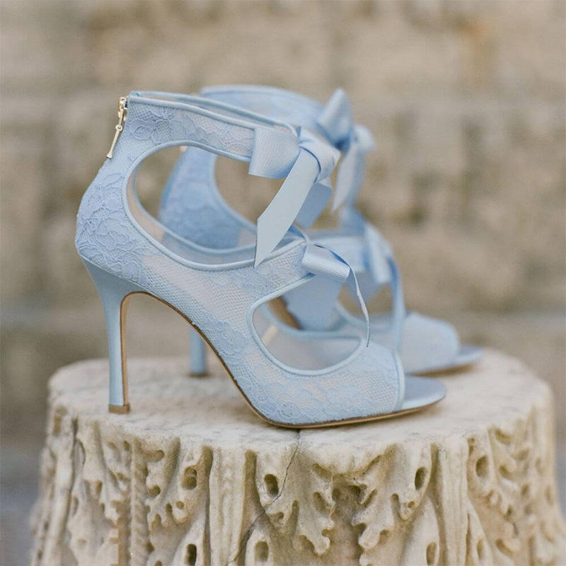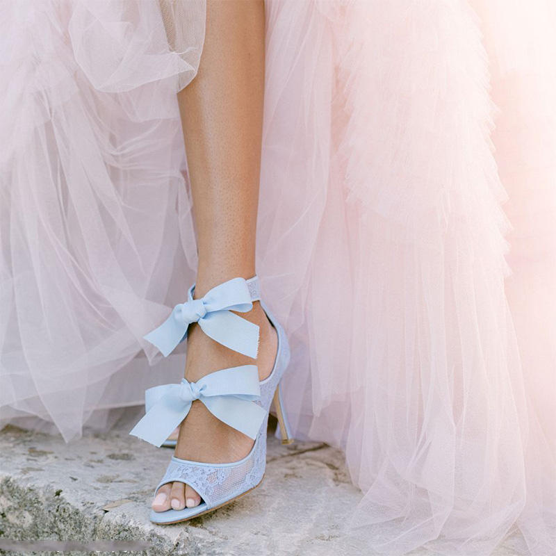 2024 scarpe da sposa personalizzate stile unico donna tacco alto scarpe da sposa a punta aperta con Design elegante blu scarpe da sposa donna